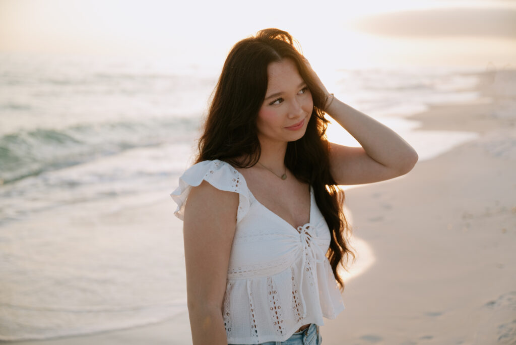 Some sessions just stick with you, and Piper’s senior session on Pensacola Beach is absolutely one of them. We took her photos on December 21st, just days before Christmas, and somehow Florida delivered the most perfect gift: sunshine and temperatures in the low 70s. It felt more like early fall than winter, and it made for the dreamiest beach session.