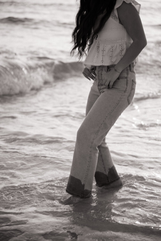 We shot a little further down the strip on Pensacola Beach, away from the busiest areas, which gave us a quieter, more relaxed backdrop. Piper was an absolute natural in front of the camera. Easygoing, confident, and totally down to have fun. She didn’t hesitate to get her feet wet, splash around, and fully embrace the moment, which always leads to the most genuine images.